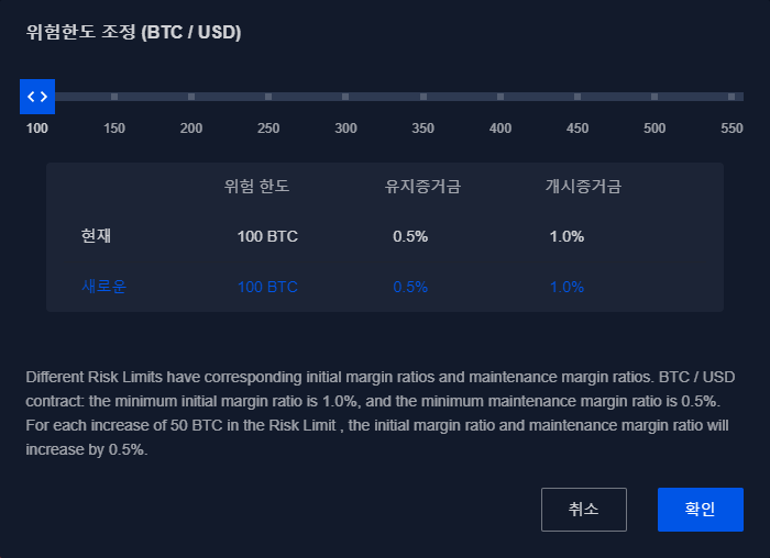 또한 위험한도를 조정할 수도 있습니다.