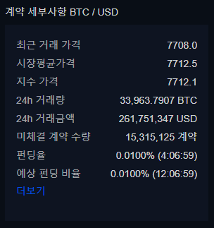 비트멕스와 동일하게 8시간 단위로 펀딩비를 지급하거나 받을 수 있습니다. 펀딩비율은 좌측 하단에 표시되며 다음 번 펀딩 지급까지 남은 시간이 괄호안에 표시됩니다.