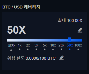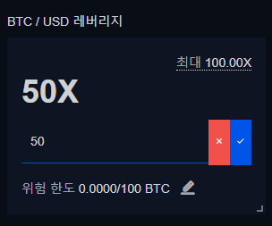레버리지 부분의 펜을 클릭하면 자신이 원하는 배율로도 거래가 가능합니다.