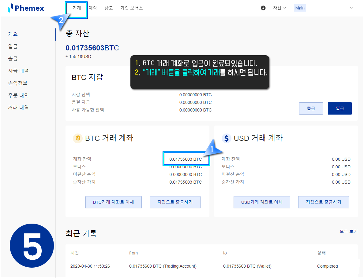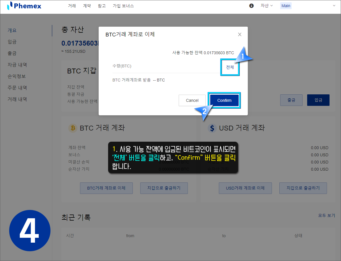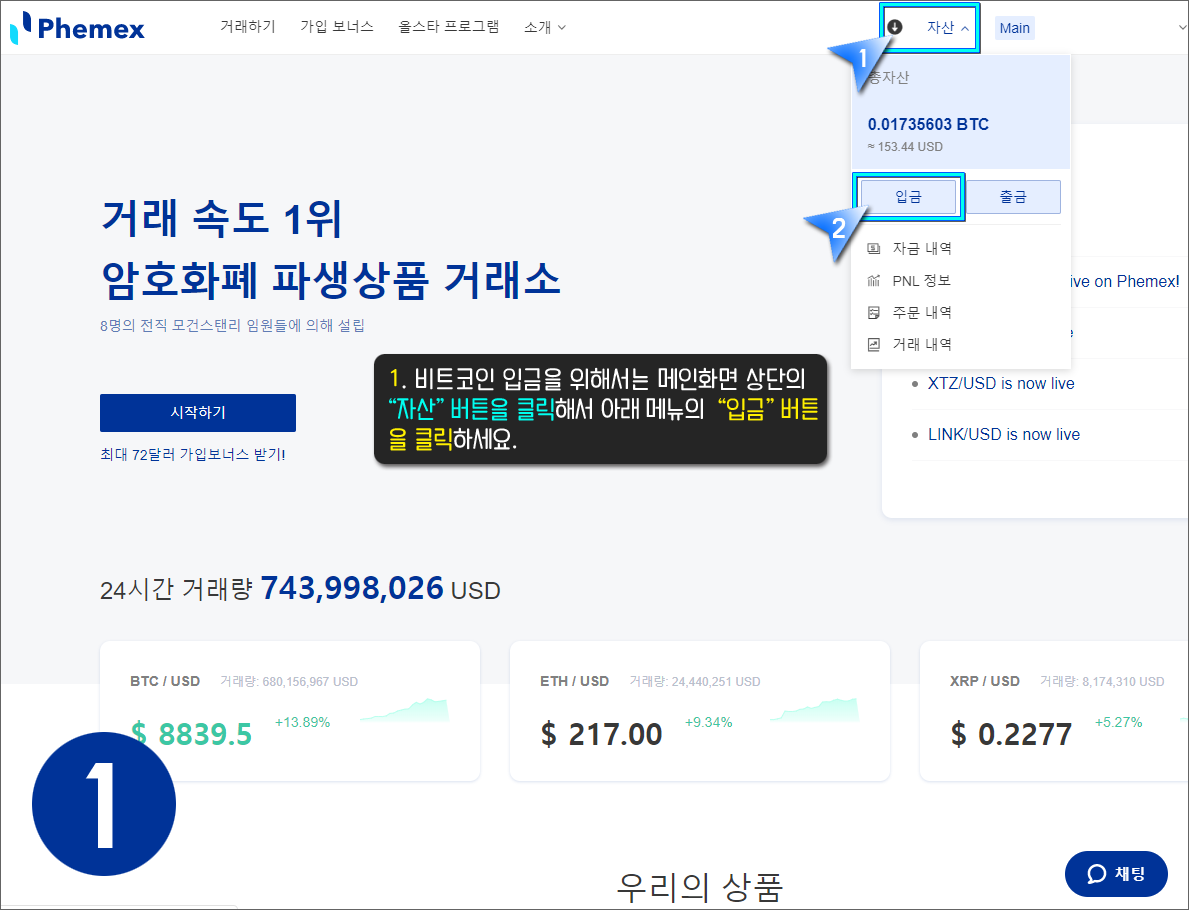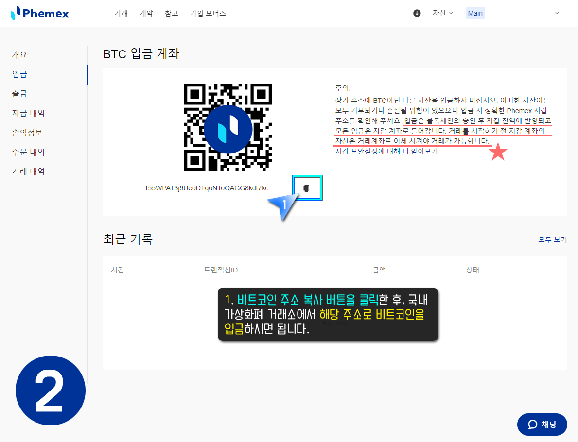 페멕스(Phemex) - 비트코인 입금하기
