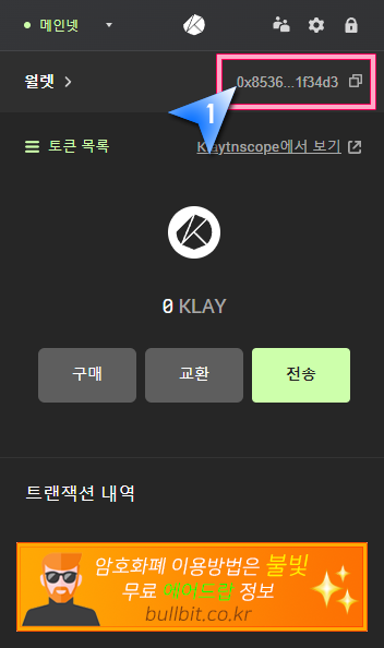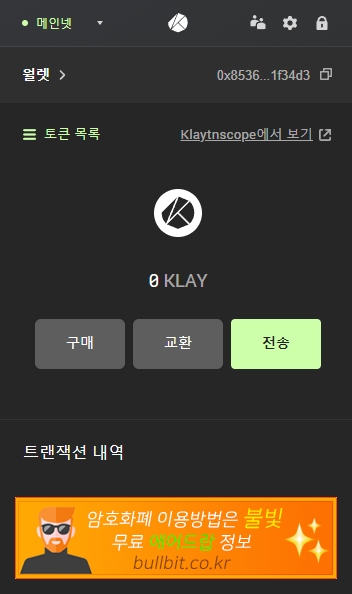 3. 이렇게 카이카스 지갑에 로그인 되었습니다.
