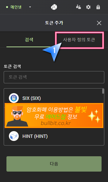 2. 그리고 하단의 "토큰 추가" 버튼을 클릭합니다.