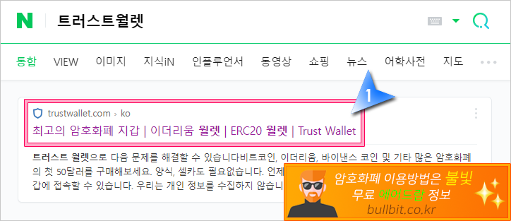 1. 아래 링크를 클릭하시거나 네이버 검색에서 "트러스트월렛" 또는 "Trustwallet"라고 검색하시면 됩니다.