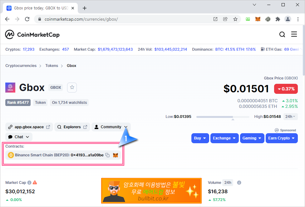 15. 그리고 정말 주의하셔야 할 것이 가끔 스캠 코인들이 에어드랍한다고 컨트랙트주소를 넣으라고 하는 곳에 공식 주소가 아닌 자신들의 월렛 주소를 넣는 경우도 허다하기 때문에 무조건 컨트랙트 주소는 코인마켓캡에서 조회후 복사해서 이용하는 것이 좋습니다.