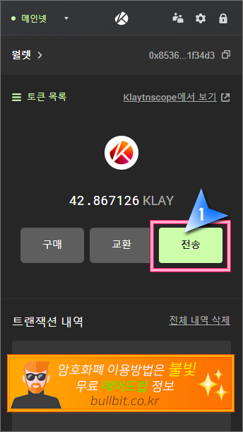 2. 메타마스크나 카이카스로 이더리움이나 클레이 전송하기(수수료 지불용)
