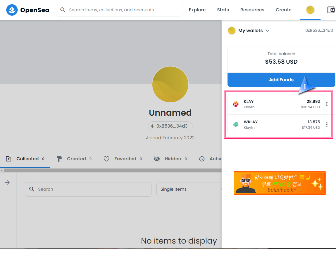 3. 오픈씨에 메타마스크나 카이카스 지갑 연동시키기