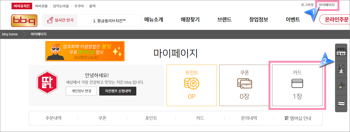얼마전 2022 코~베이징 동계올림픽을 기념하여 BBQ에서 무료 NFT를 나눠주는 행사를 가졌습니다. 그런데 참여자 중 일부에게 먼저 NFT를 선지급해서 저도 BBQ 홈페이지에 들어가보니 '카드' 내역에 1장이라고 찍혀있어서 곧바로 오픈씨에 방문했습니다. BBQ는 카이카스 지갑을 이용해서 NFT를 무료로 에어드랍했기 때문에 오픈씨에 카이카스 지갑이 연동되어 있다면 따로 BBQ를 방문하지 않아도 오픈씨에서 에어드랍 받은 NFT를 확인하고 매도하여 현금화할 수 있습니다.