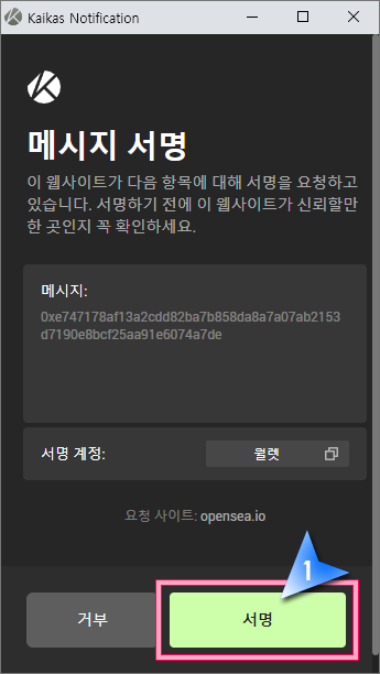 13. 메시지 서명을 위한 사인 절차입니다. "Sign" 버튼을 클릭합니다.