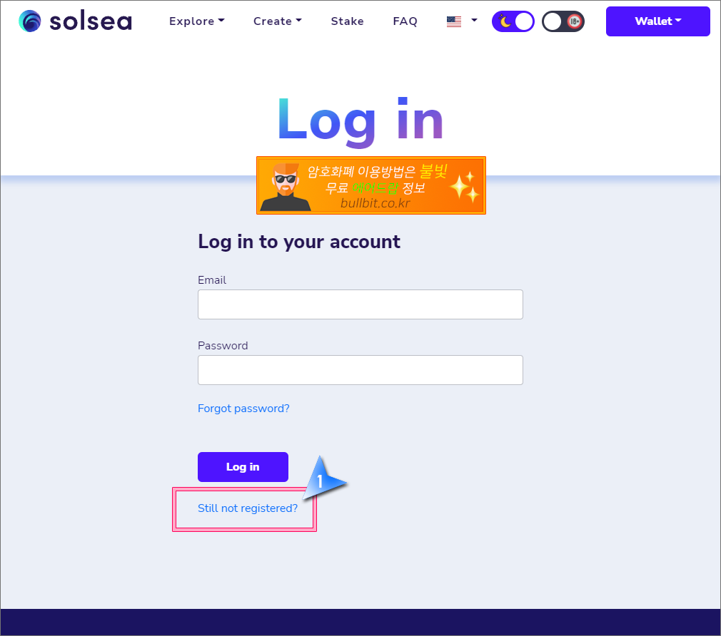 8. 솔씨와 솔렛이 서로 연동되었습니다. 다음은 가입 절차입니다. 이메일 주소와 비번만 간단히 입력하면 됩니다. 가입을 위해서 하단의 "Still net registered?" 를 클릭합니다.