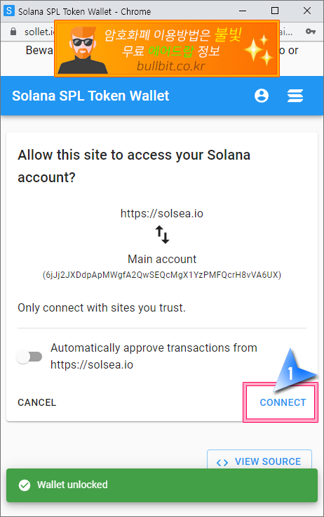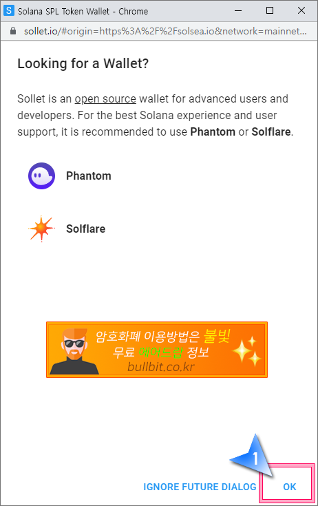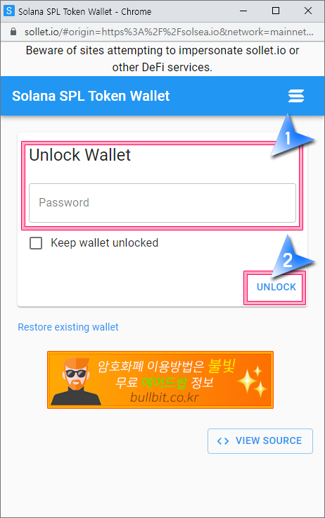 NFT 솔씨(SolSea)거래소 연동을 위한 솔렛(Sollet) 지갑 만드는 방법
