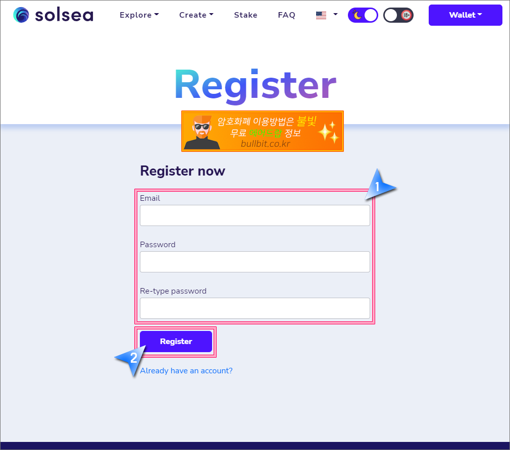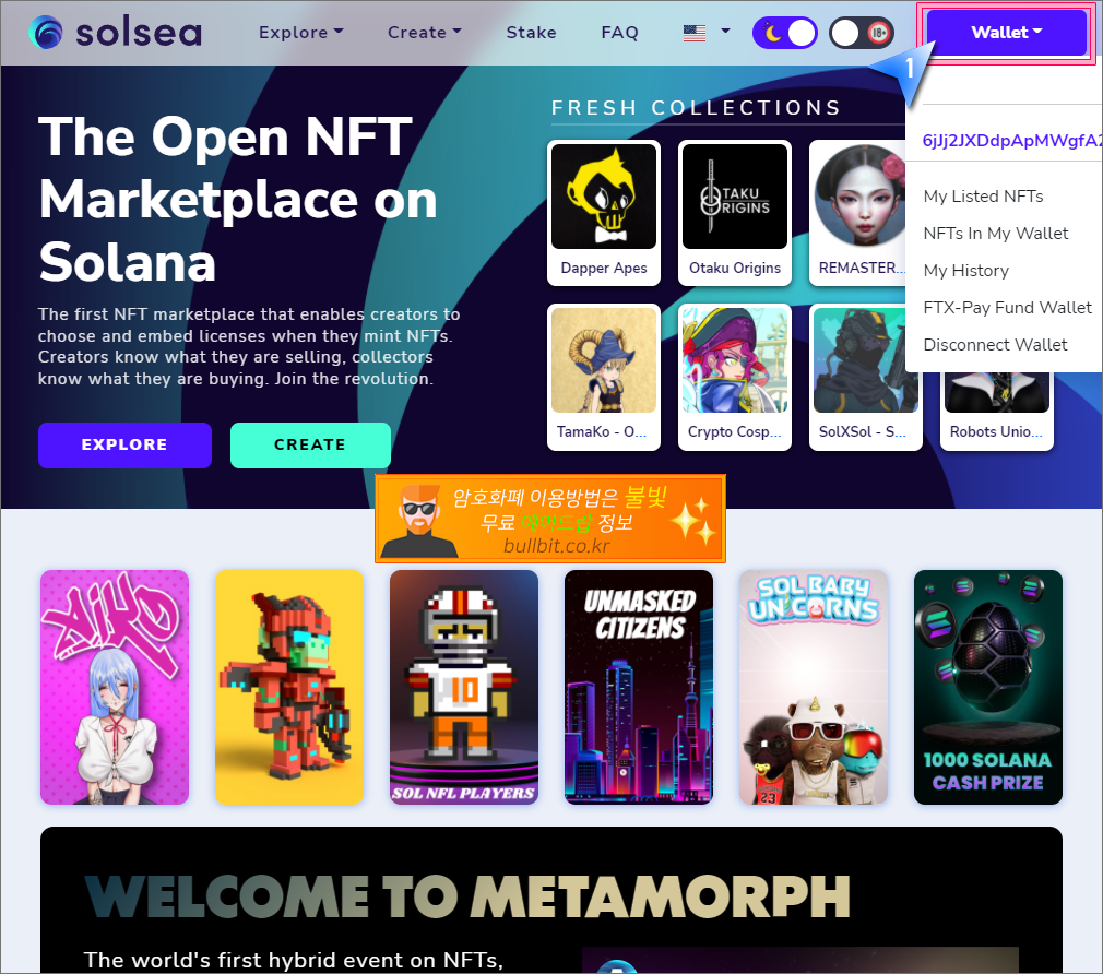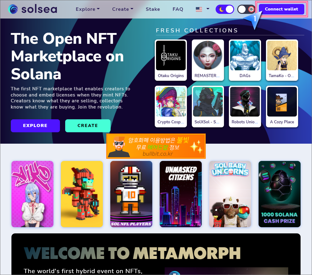 솔라나 생태계 NFT 마켓 솔씨(Solsea) 가입하고 지갑 연동하는 방법