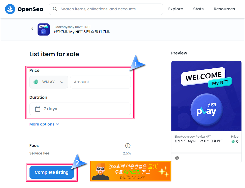 카카오 클립(KLIP) NFT를 오픈씨(OpenSea) 마켓에 판매하는 방법