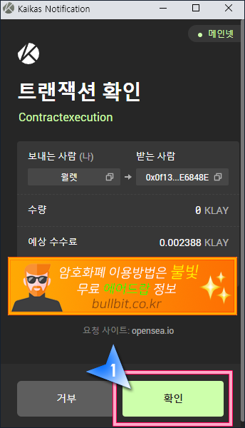19. 그럼 오픈씨에 잘도착했는지 확인해보겠습니다. 만약 오픈씨 설치나 카이카스 지갑 연동을 하지 않으신 분들은 아래 포스팅을 참고해서 먼저 카이카스 지갑 연동을 시켜놓고 확인하시기 바랍니다.