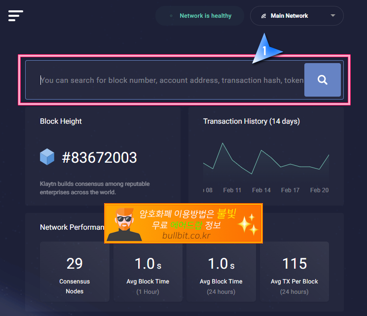 Klaytnscope allows you to find data by monitoring network health and statistics of Klaytn as well as profiling blocks and transactions on Klaytn.