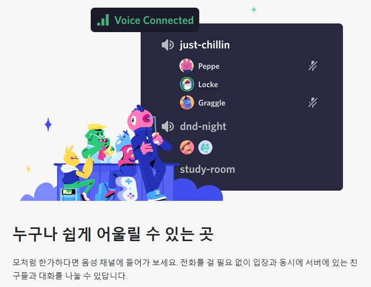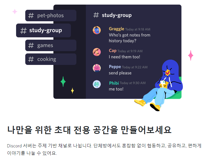 참고로 Discord는 영어로 '불화', '다툼' 이라는 말인데 소통을 위한 채팅 프로그램에 쓰인다니 좀 아이러니 하네요. ^^