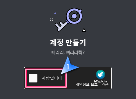 5. 봇에 의한 자동가입을 방지하기 위한 캡챠 인증화면입니다. '사람입니다'에 클릭합니다.
