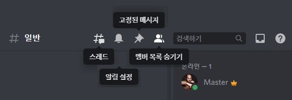 2. 서버 내의 채널 목록을 나타냅니다. 채널 목록은 서버별로 다른데 대부분 존재하는 채널로는