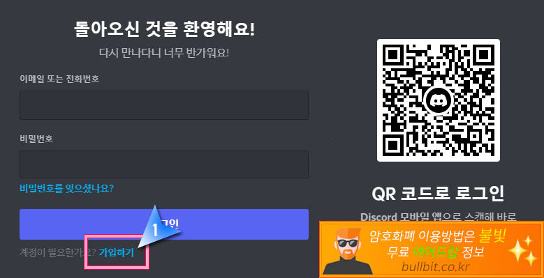 3. 로그인 화면 하단의 "가입하기" 버튼을 클릭합니다.