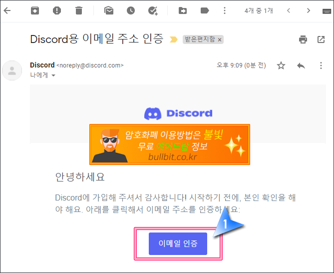 8. "이메일 인증" 버튼을 클릭해주세요.