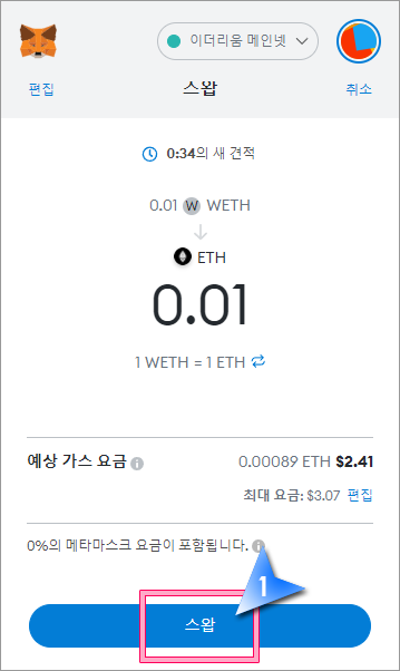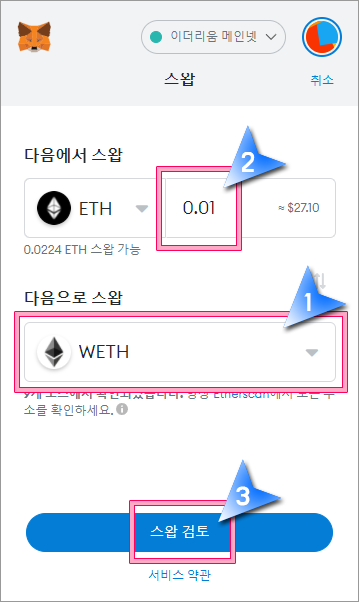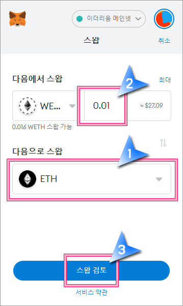 메타마스크에서 ETH를 WETH로 스왑