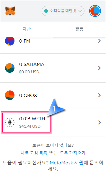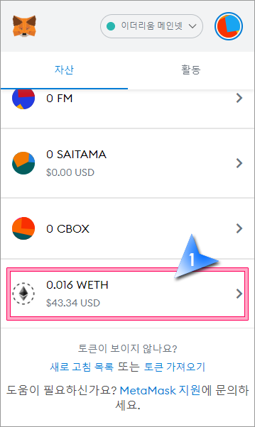 1. 메타마스크 WETH 잔액을 클릭합니다.