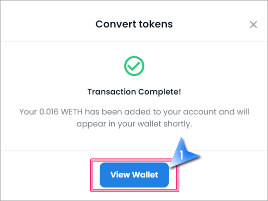 5. ETH가 WETH로 랩 되었습니다. View Wallet를 클릭해서 지갑을 확인하시기 바랍니다.