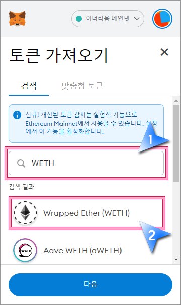 메타마스크에서 WETH 토큰 추가