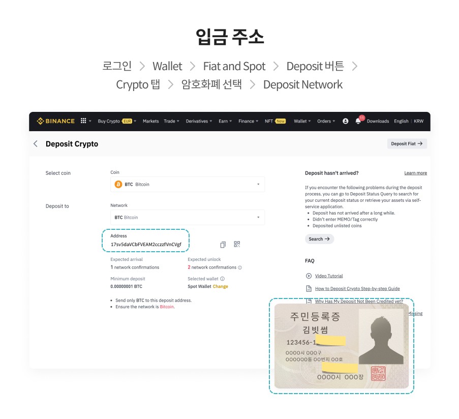 ① [필수] 가상자산을 이전할 거래소의 입금 지갑주소와 신분증 동시 촬영