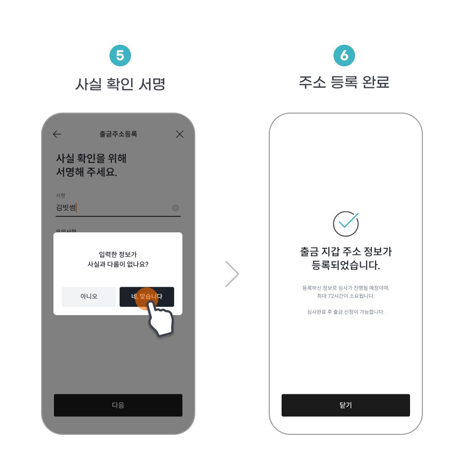- [모바일웹/App] 입출금 > 출금주소관리 > 주소등록