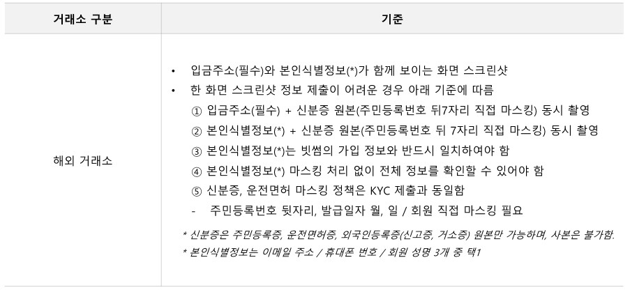 출금주소 등록시 증빙 이미지 등록 기준
