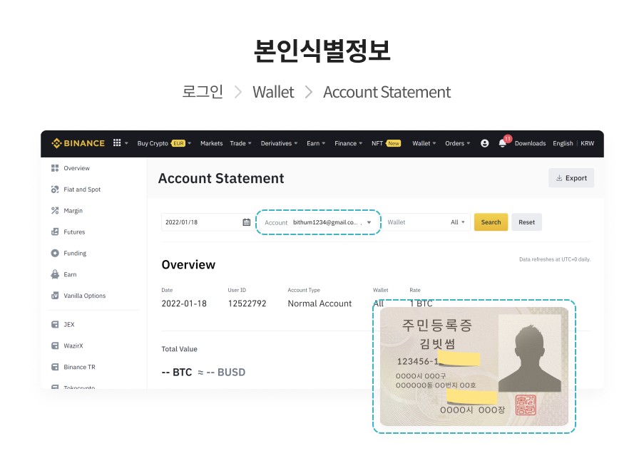 ② [필수] 가상자산을 이전할 거래소의 본인식별정보와 신분증 동시 촬영