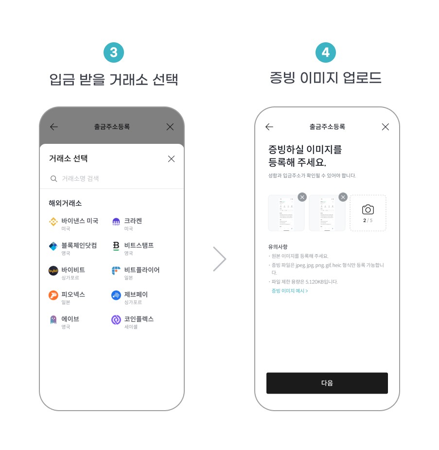 4. (해외거래소 또는 개인지갑으로 출금 시) 증빙 이미지 업로드