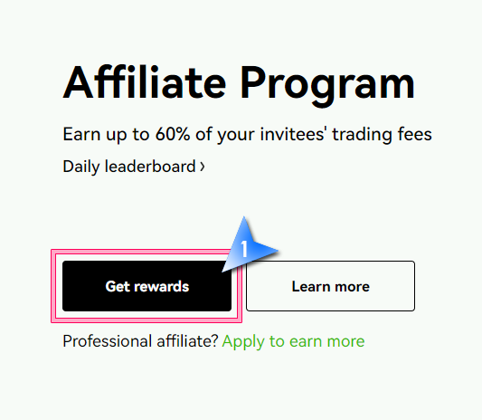 3. Get rewards를 클릭하여 Professional affiliate에 가입 신청합니다.