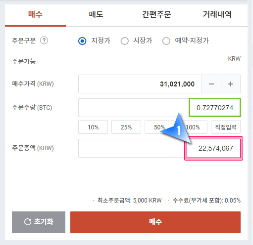 선물거래 시장가 수수료율 : 0.06%
