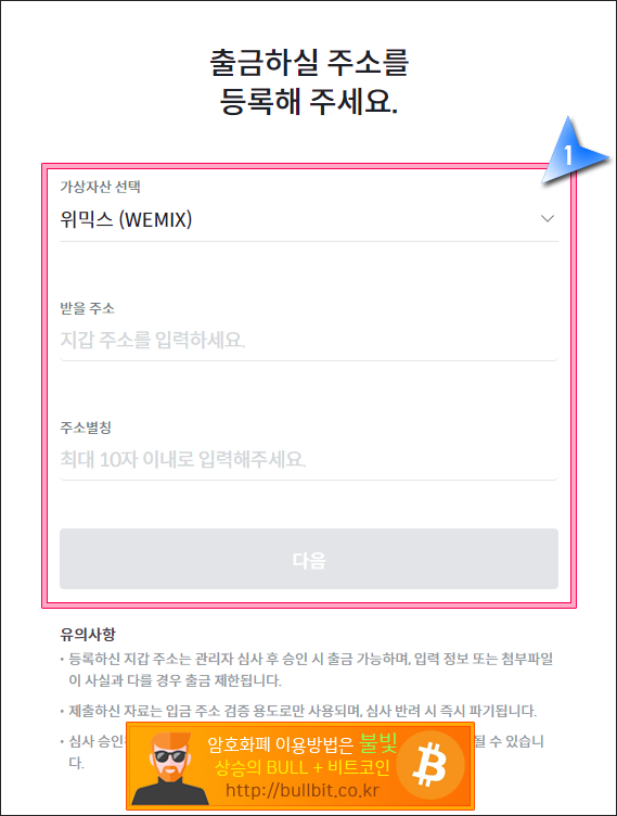 9. 출금주소 등록시 사진과 영상 등의 자세한 등록 방법은 아래 포스팅을 참고해서 진행하시기 바랍니다.
