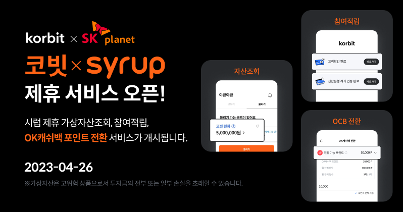 2023년 04월 26일부터 코빗X시럽 제휴 신규 서비스를 오픈합니다.