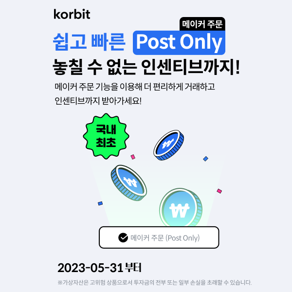 [코빗] 쉽고 빠른 메이커 주문(Post Only), 놓칠 수 없는 인센티브까지!