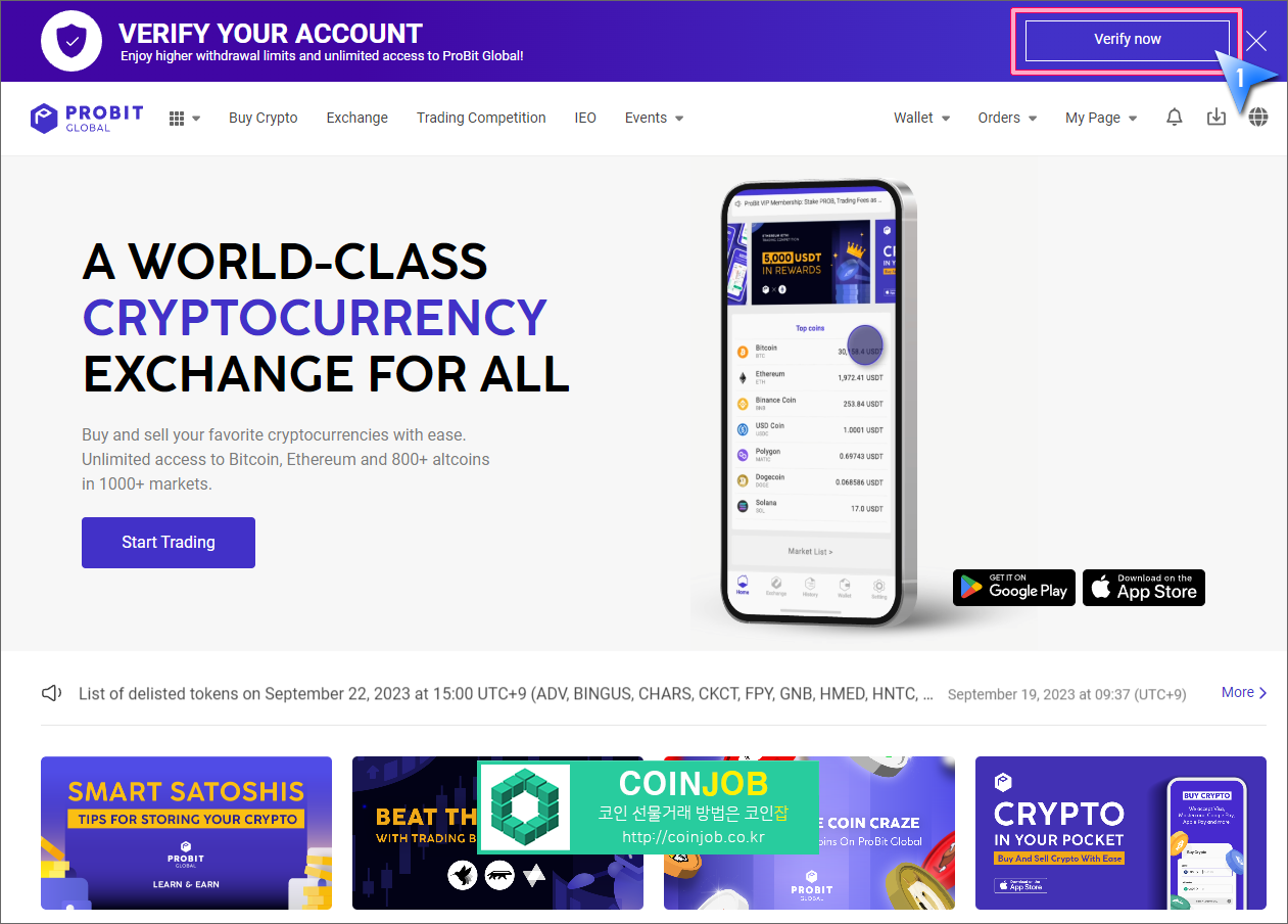 1. 크롬 브라우저에서 아래 링크를 클릭해서 프로비트 글로벌 거래소를 엽니다.