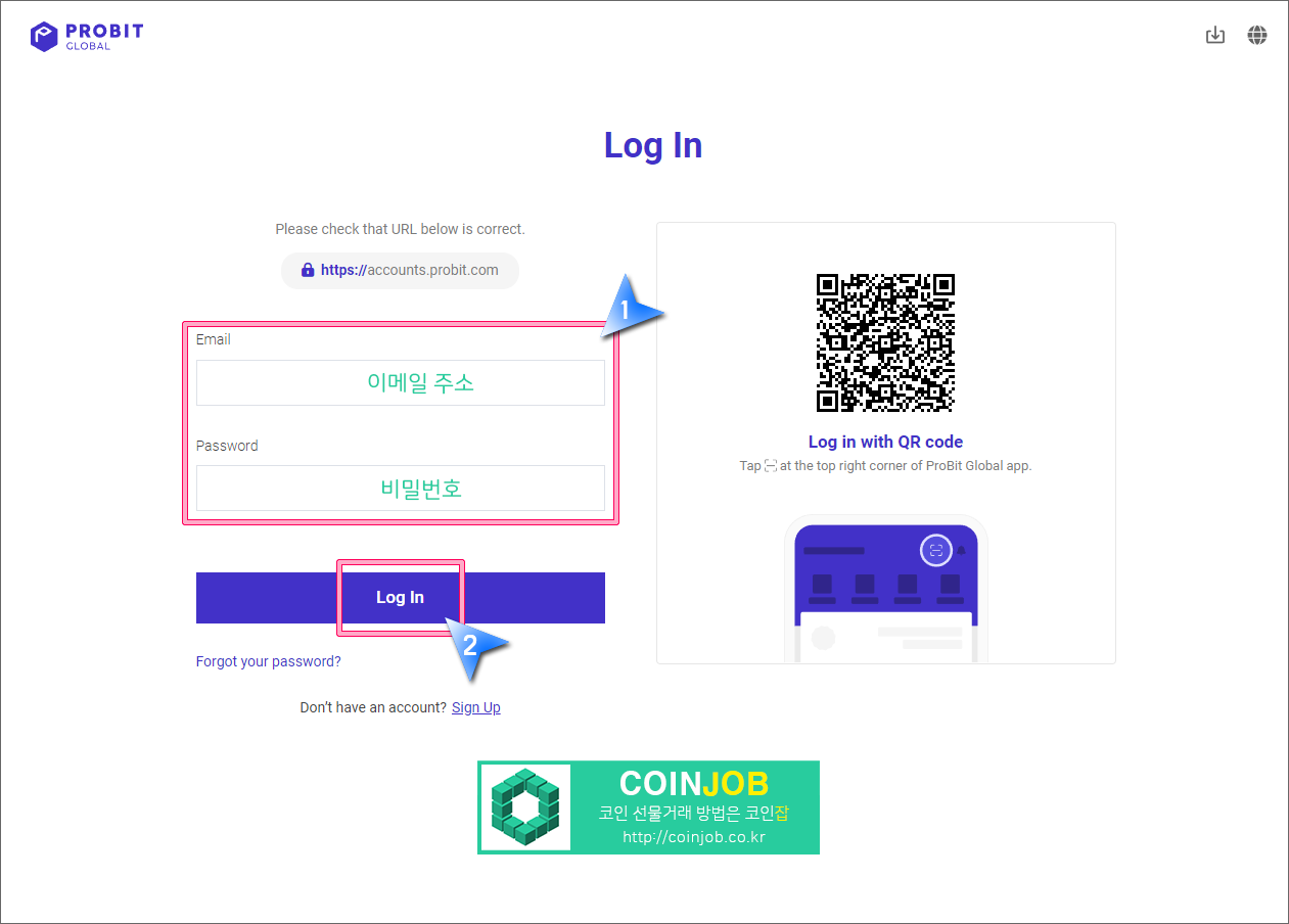 2. 프로비트 우측의 Sign Up을 클릭합니다.