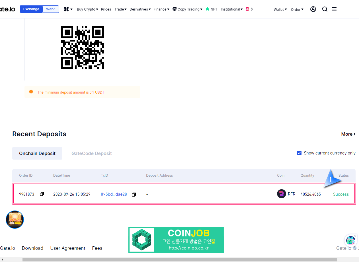 업비트 상폐코인 리퍼리움(RFR) 현금화하는 방법 - Gate.io에 리퍼리움 입금