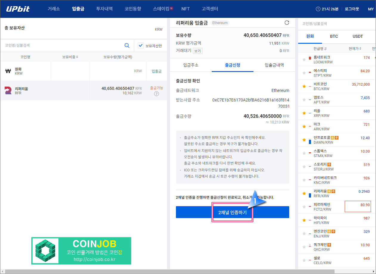 업비트 상폐코인 리퍼리움(RFR) 현금화하는 방법 - 리퍼리움 매도 및 현금화