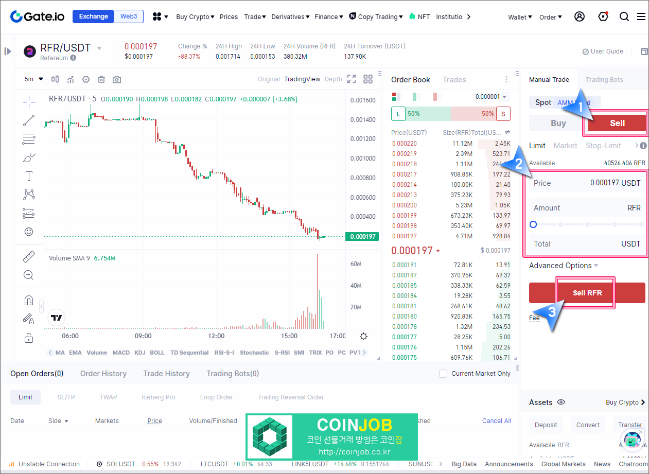 이렇게 Gate.io에 리퍼리움을 입금하고 매도해서 현금화하는 방법에 대해서 자세히 살펴보았습니다. 코인 상폐로 손실이 크신 분들이 많으실텐데 빨리 원금복구 되시길 기원합니다. Good Luck~!
