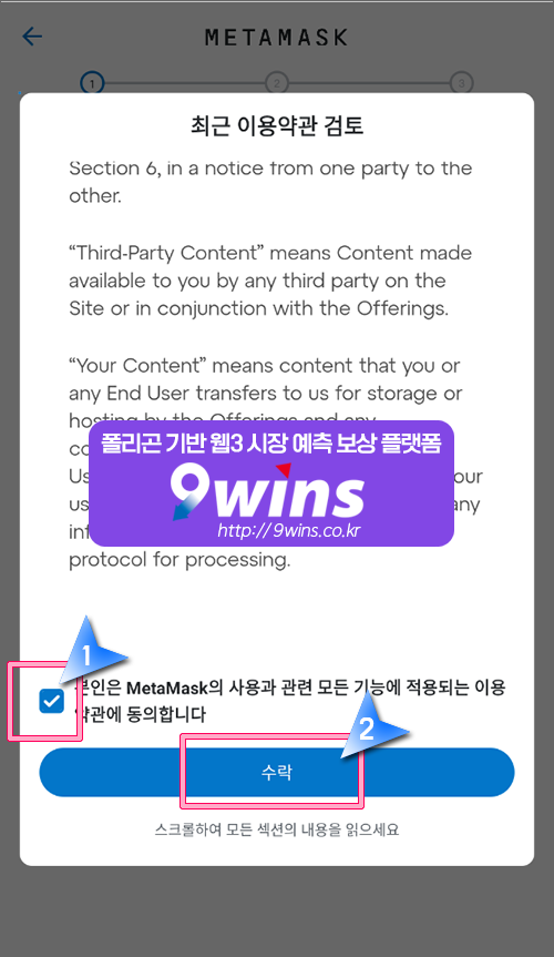 6. 약관 동의에 체크하시고 "수락"을 클릭합니다.