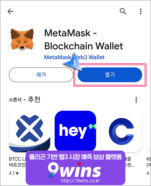 2. 설치후 "열기"를 클릭하여 메타마스크를 실행합니다.