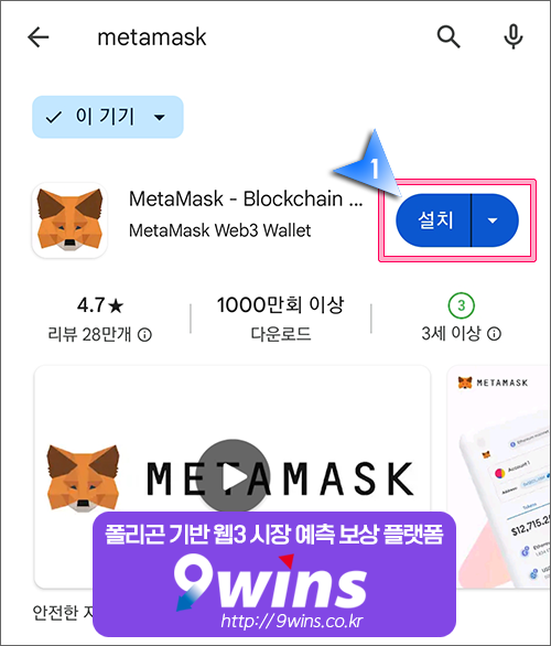 1. 구글 플레이나 앱 스토어에서 "metamask"를 검색하여 설치합니다.