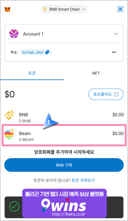 6. 그러면 이렇게 BNB Smart Chain 안에 Beam 토큰이 추가된 것을 확인할 수 있습니다.