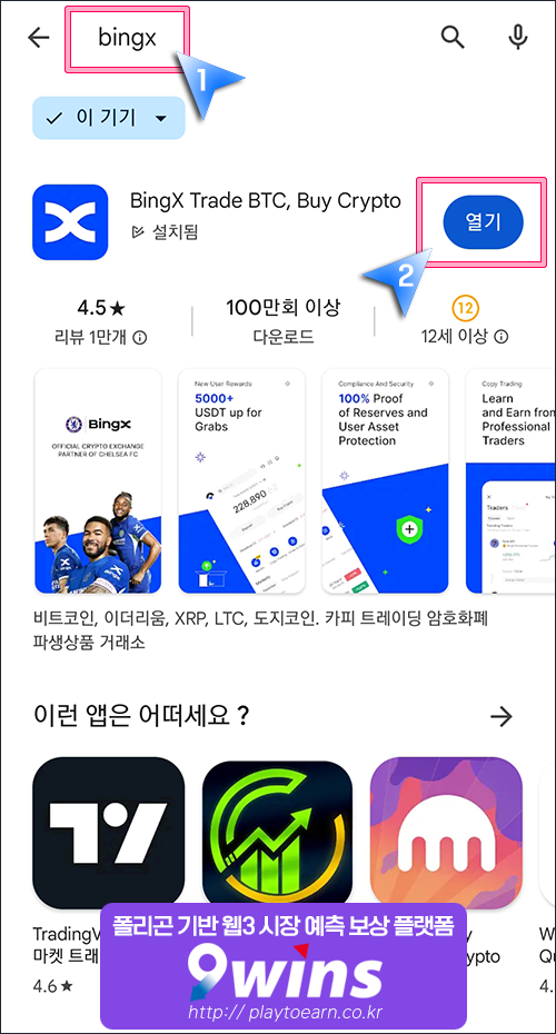 2. 앱 설치후 "열기"를 클릭하여 BingX를 실행합니다.