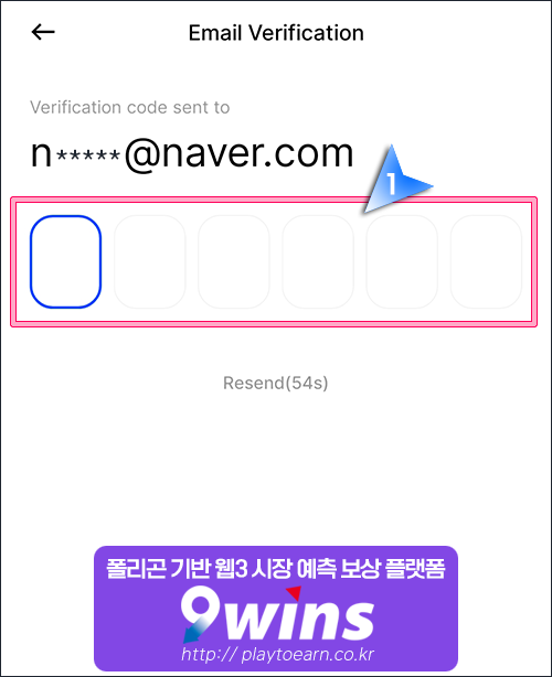 7. 방금 가입시 입력했던 자신의 이메일 주소로 인증코드가 발송됩니다. 인증코드를 이 화면에 입력해주시기 바랍니다. 만약 인증코드가 이메일로 도착하지 않는다면 스팸 메일함도 확인해보시고, 그래도 도착하지 않는다면 하단에 있는 Resend 버튼을 눌러서 재전송하시면 됩니다.