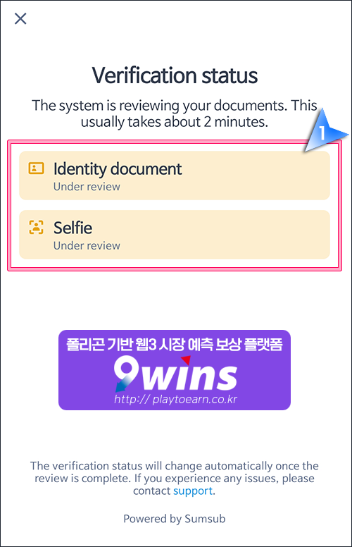 11. 셀카 인증까지 완료되면 Verification status(인증 상태)가 Under review로 나타납니다. 인증은 빠르면 몇분안에, 일반적으로는 대략 1시간 이내로 완료되는데 간혹 몇시간씩 걸리기도 하니 인내심을 가지고 기다려 주시면 됩니다.
