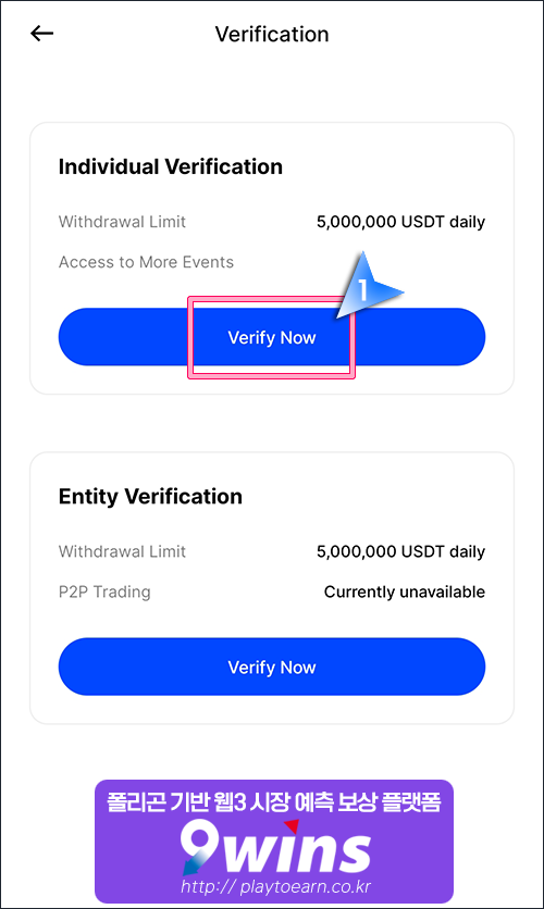 3. Individual Verification에서 "Verify Now"를 클릭합니다.